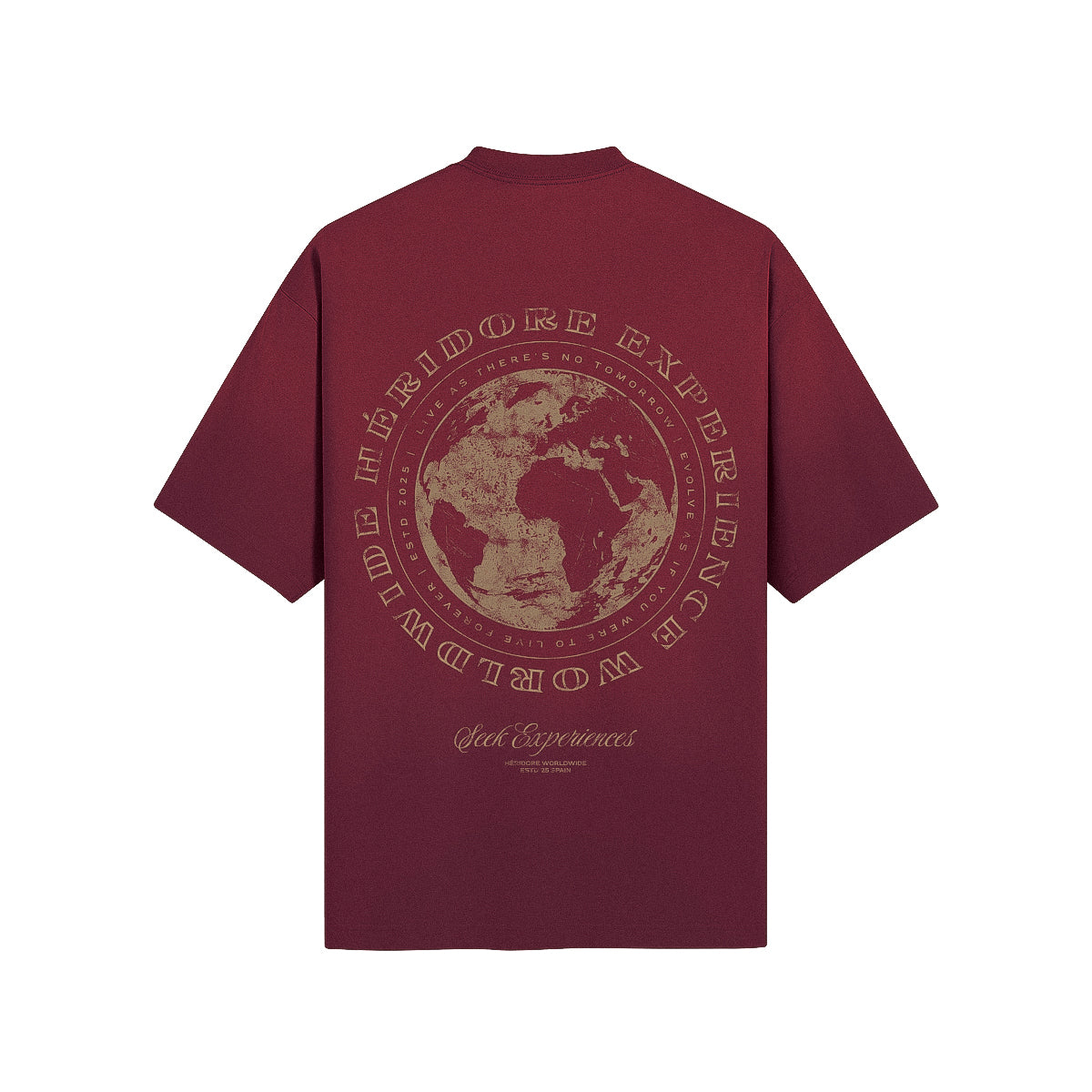Seek Worldwide Experiences - Live as There's No Tomorrow, Evolve as if You Were to Live Forever Boxy T-shirt features a subtle vertical tonal gradient created by PP wash treatments, giving it a timeless vintage look. Crafted from soft, breathable 100% combed cotton, it feels comfortable while reactive dyes ensure long-lasting color vibrancy, preserving its appeal wash after wash. Available in curated color options that embody a vintage aesthetic.